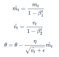 m과 v가 처음에 0으로 초기화되고 Beta 1, Beta2는 0.9, 0.999의 값을 주로 사용하기 때문의 초기에 weight update가 0에 편향된다.