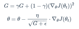 Adagrad의 $G$가 weight가 update 됨에 따라 계속해서 증가하는 문제를 어느 정도 해결이 가능하다.