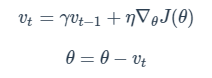 $\gamma$는 momentum term으로 0.9를 기본값으로 대부분 사용한다.