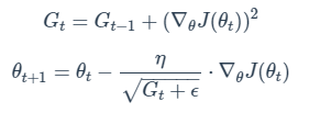 $G_{t}$는 weight와 같은 차원의 벡터로 각 변수의 gradient의 제곱합을 저장한다.
