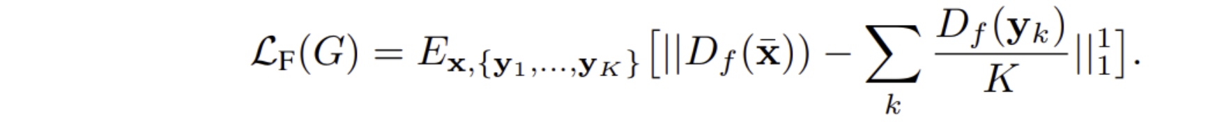 - feature matching loss는 학습을 regularize, $D_f$ 는 $D$ 에서 last prediction layer를 제거한 구조