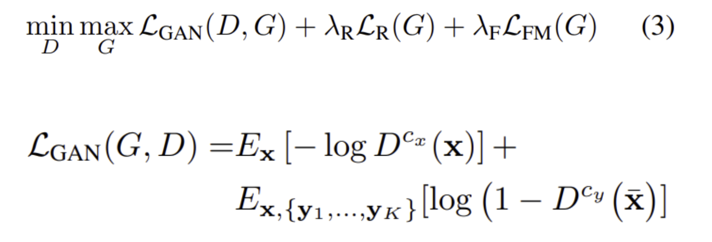 - 학습과정에서 $G$ 는 random sampling된 두 class $c_x, c_y \in \mathbb S,(c_x \ne c_y)$ 간 image translation을 학습
