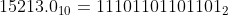 1) 10진수로 표현된 15213.0을 2진수로 변환한다.