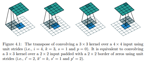 Transposed Convolution 은 Convolution의 방향을 바꾼 것과 비슷하게 동작한다.