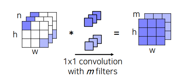 1x1 convolution layer를 사용하여 activation map의 차원을 조절하며 마지막에는 class 갯수와 동일한 차원의 activation map이 나오게 된다. width와 height의 경우 1x1 convolution layer를 사용하여 그대로 유지된다.