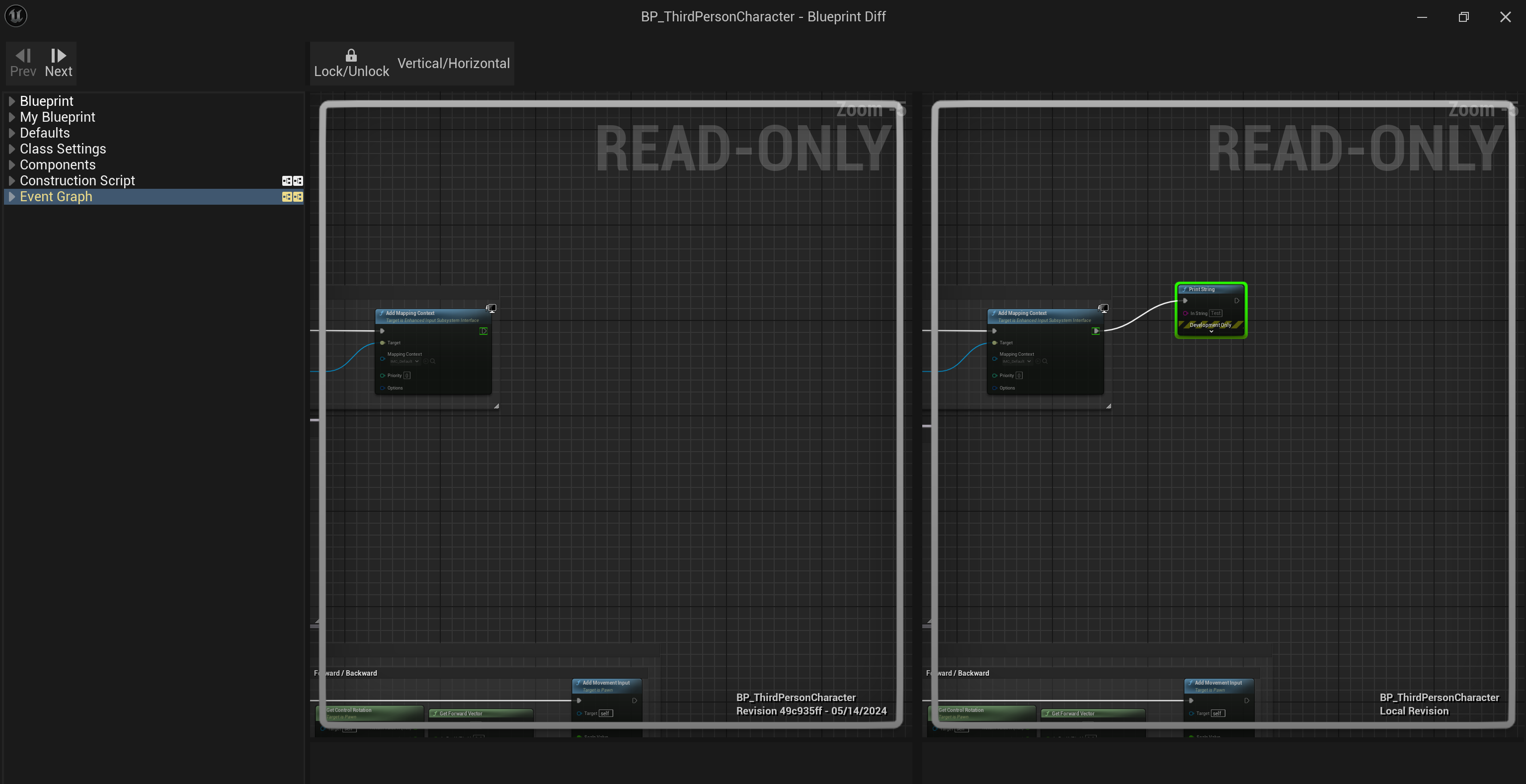 Unreal Engine에서 제공하는 주요 기능은 바로 Blueprint에서 Diff와 기록을 보여주는 것이다.