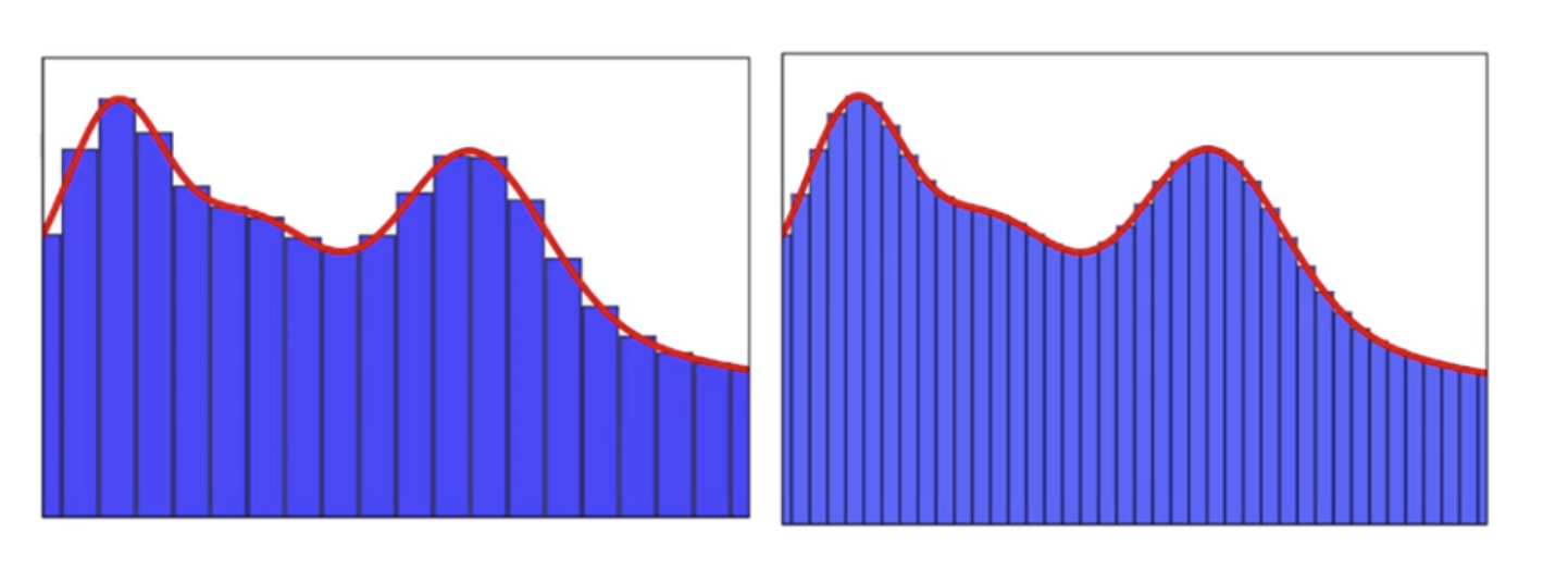 오른쪽 사진에서 볼 수 있듯이 구간을 짧게 하면 더 정확하게 함수를 근사하는 것을 볼 수 있다.