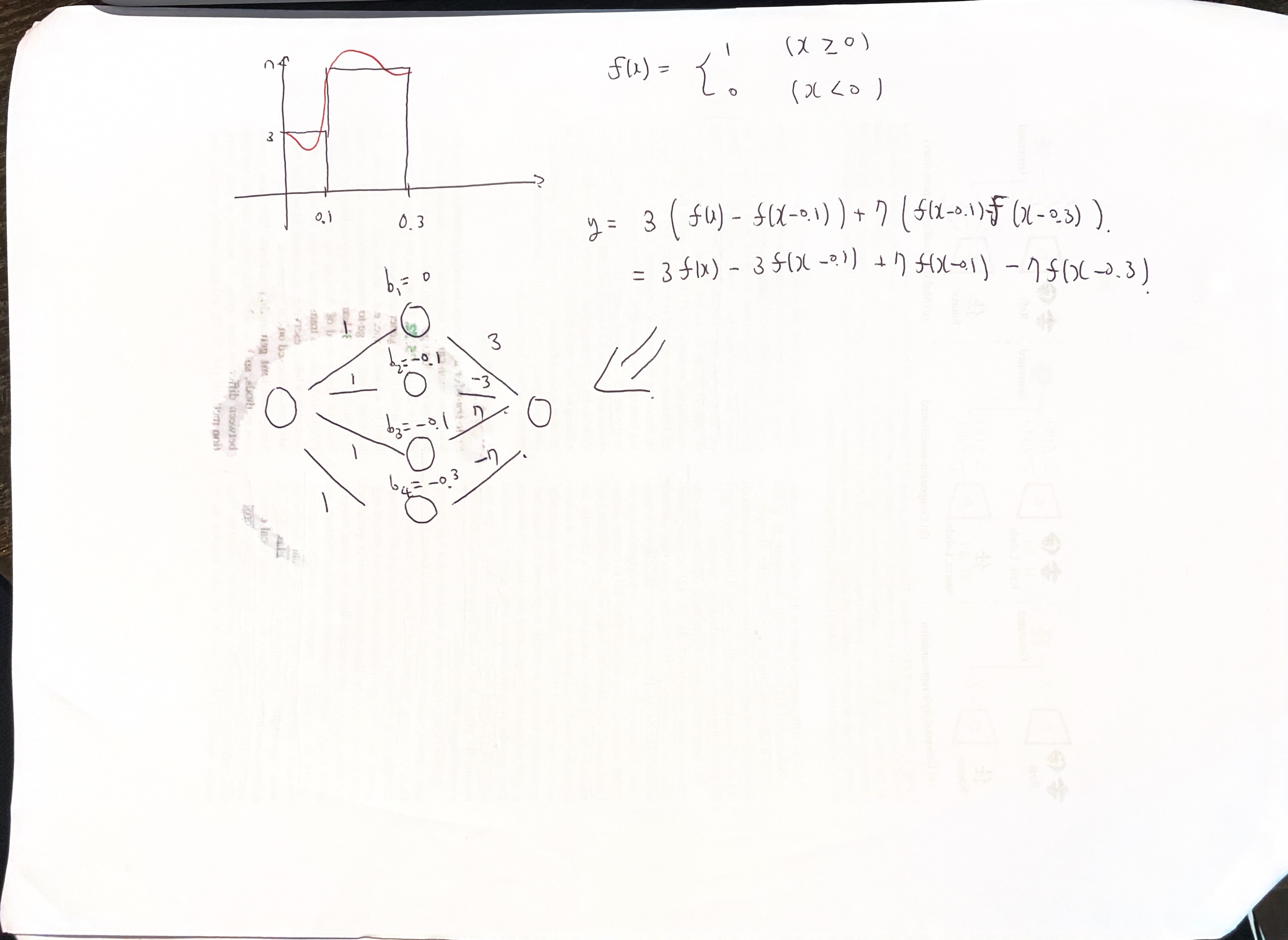 전체 정의역을 커버할 수 있도록 hidden layer에서 매우 많은 node를 사용하면 bar의 width는 0에 수렴하게 되며 더 적은 오차로 근사가 가능해진다.