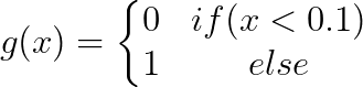 f(x) - g(x)는 x가 0보다 같거나 크고 0.1보다 작을 때 1의 값을 가지고 나머지 정의역에서는 0의 값을 가지는 bar 형태의 함수가 된다.